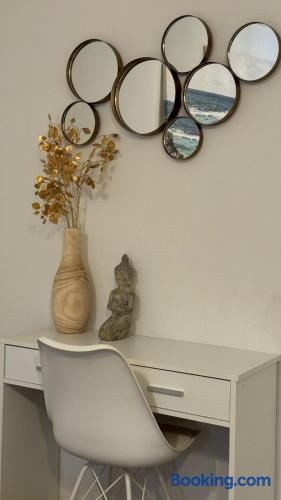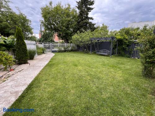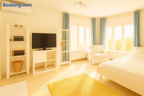 Comfortable Living: Sun Residence in Timișoara offers a one-bedroom apartment with a sun terrace and a garden. Guests enjoy free WiFi, air-conditioning, and a fully equipped kitchen. Convenient Facilities: The property features private check-in and check-out services, an outdoor play area, and a picnic area. Additional amenities include bicycle parking, family rooms, and streaming services. The whole family at this peaceful place to stay.